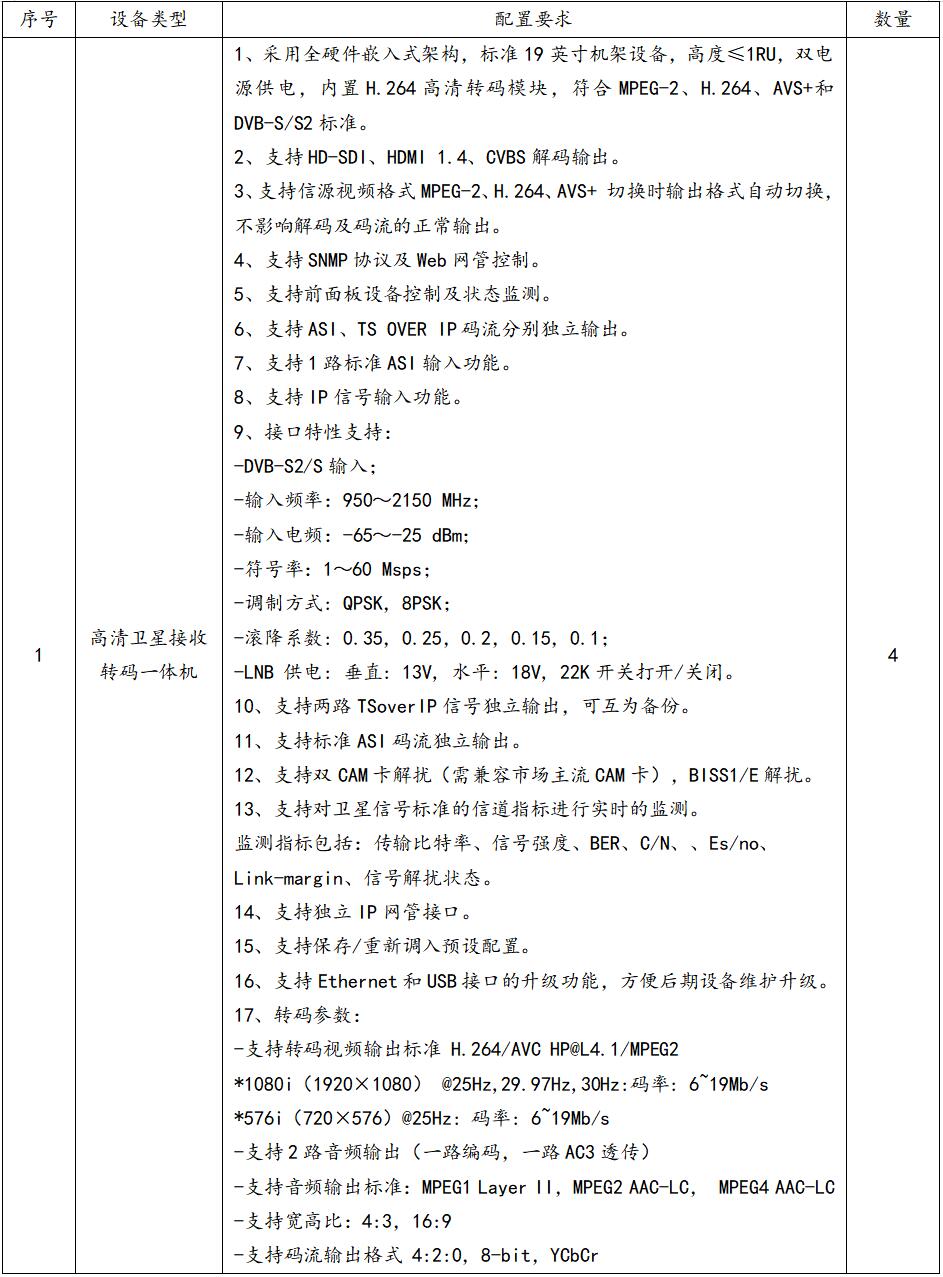 二、采購項(xiàng)目名稱:高清衛(wèi)星接收轉(zhuǎn)碼設(shè)備采購項(xiàng)目
